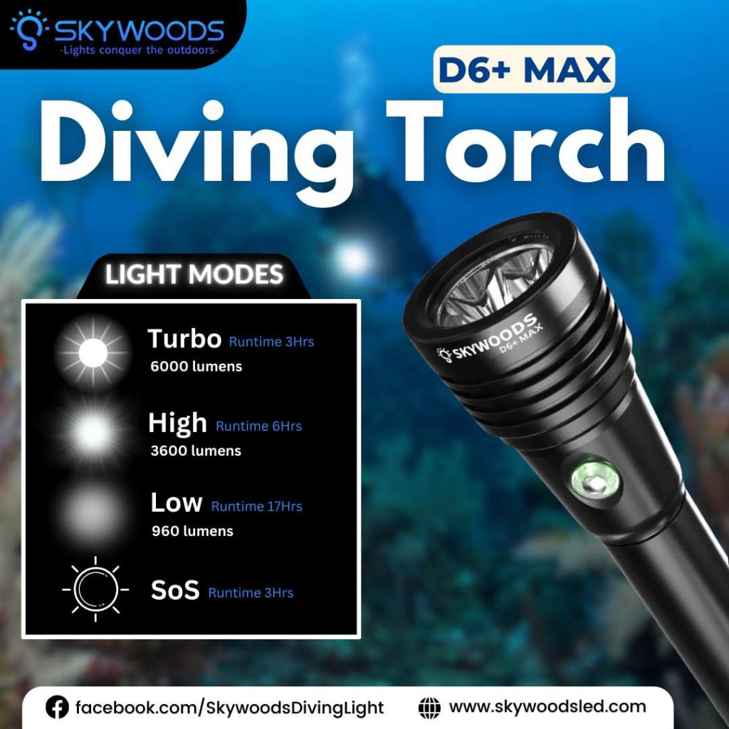 【月間セール40%OFF!】SKYWOODS D6+ MAX ダイビング フラッシュライト