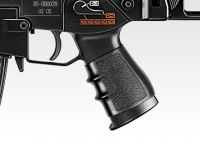 ■フォールディング・ストック:ボディ側面に折りたたむことができるストックは、本物と同じロックメカニズムを採用しています。ストック後部にはすべりにくいラバーバットプレートを装備し、グリップに装着したラバー・グリップカバーとあわせて構えた時に本体をしっかりホールドすることができます。また、ストック上部のチークパッドは搭載する光学機器に合わせて頬付け位置を2段階に調整可能です。